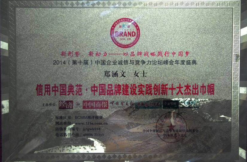 亚洲偶像级美学专家导师郑涵文12年的专业历程,成功帮助众多明星、名媛及高端女性实现多年的美丽梦想,用爱心援助山区贫困儿童、唇裂儿童、留守儿童,被西方媒体誉为“东方的奥黛丽赫本”。此次荣膺“信用中国典范,中国品牌建设实践创新十大杰出巾帼”大奖,颁奖词完美诠释郑涵文女士奉献爱和传递美的美丽历程。
